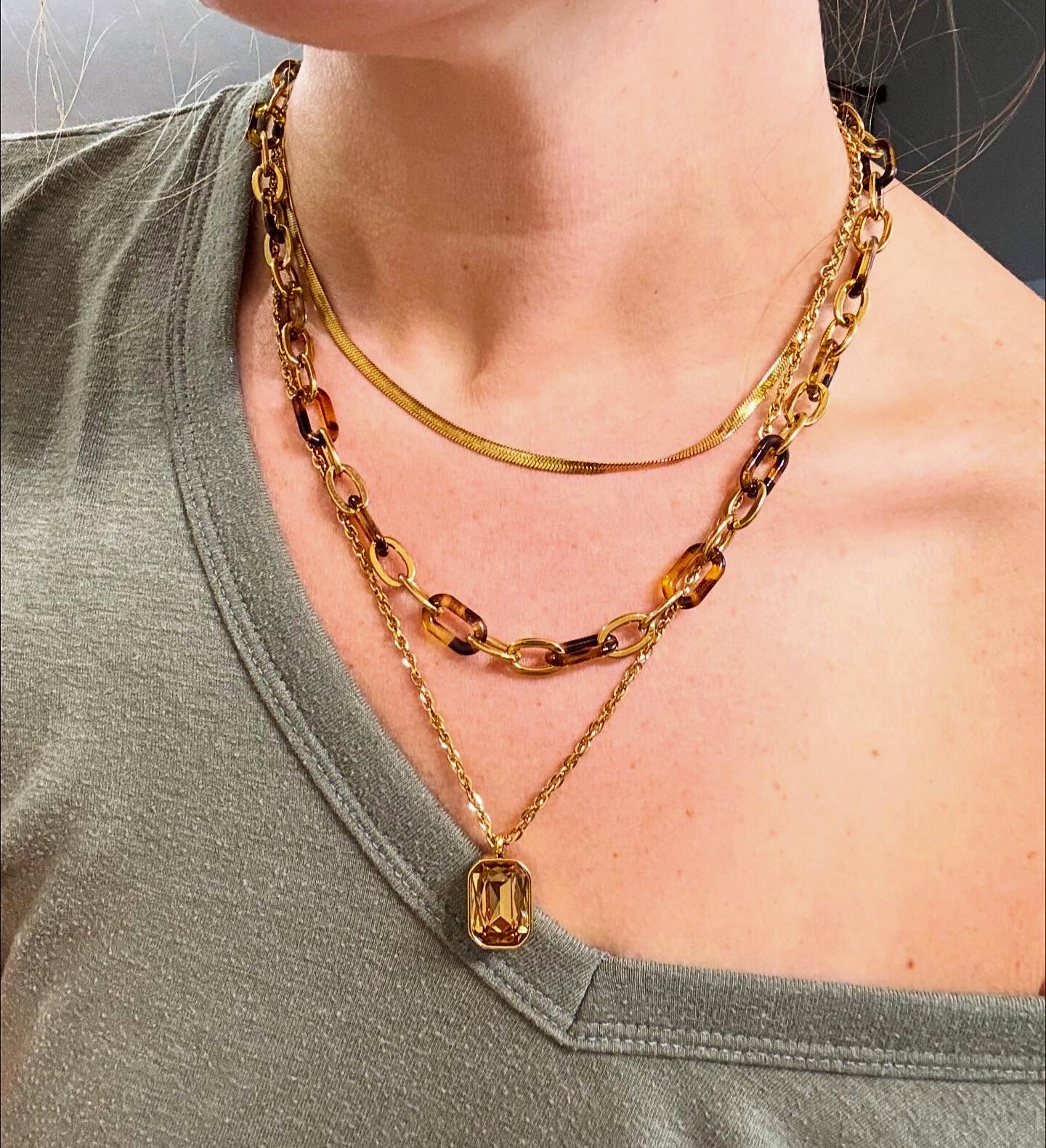Bright champagne glow. Bold textured tortoise link. The Aura Stack is made for the bold.