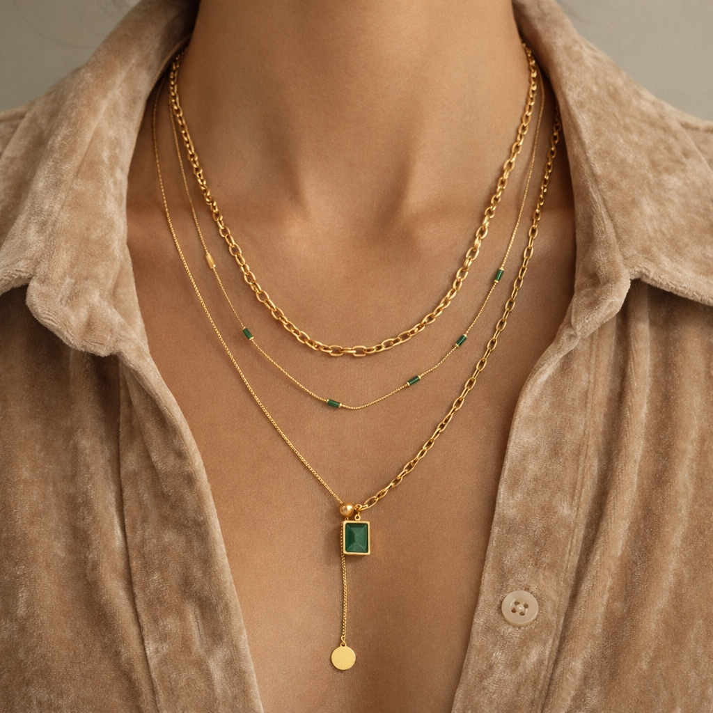 Our waterproof jewelry features a premium PVD (Physical Vapor Deposition) coating over high-quality gold fill and stainless steel base metals. This creates a sealed surface that resists water, humidity, and everyday exposure.